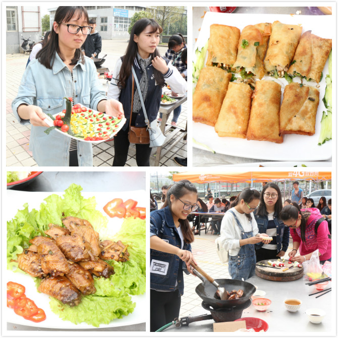 综合知识问答的得分,最后来自15级物流管理1班的代表队凭借着“什锦春盘”和“水果蛋糕”揽获了一等奖;二等奖的获得者是来自15级市场营销代表队,他们的“西湖醋鱼”也是广受好评;15级金融工程代表队的“金鸡薄翼”也凭借着完美的品相和味道取得了三等奖的好成绩;创意奖的获得者是来自14级国际经济与贸易中外合作班的代表队。