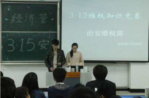 3月19日晚,由九游体育官网学生会治安维权部承办的3.15维权知识竞赛决赛在文溯楼208教室举行,九游官网学生会主席杨健、副主席张材吉、胡珂,实践部部长朱强,通讯社社长骆梦云,外联部部长周小雪担任了本次活动评委,九游官网学生积极参与了此次活动。