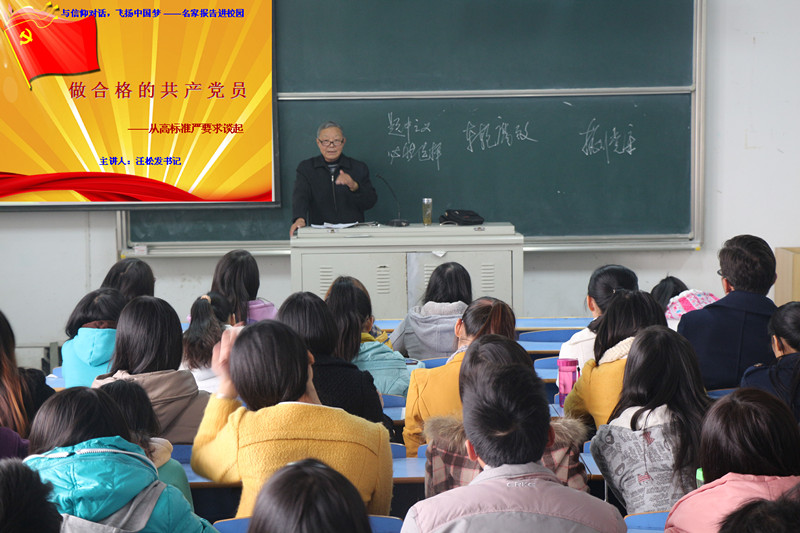 12月4日下午,九游体育官网在文溯楼304教室举办“与信仰对话飞扬中国梦——做合格的共产党员”名家报告会。报告会由九游体育官网原党总支书记汪松发老师主讲,学院党总支副书记徐晓宁、党政办公室主任余江舟、团总支副书记张军及学院70余名党员聆听了报告。