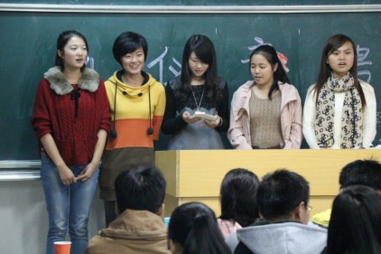 活动分为三个部分:第一部分是参加选手的自我介绍环节。在简短的自我介绍后,各位评委对选手就有关礼仪方面问题进行提问和指导。中间插入特色环节,即由女生部全体干事带来的精彩歌曲串烧,给现场观众带来听觉上的充分享受。活动的最后环节由礼仪队队长及女生部干事向大家示范一般的礼仪标准动作,如迎宾、端茶、颁奖等,再由选手们合作展示。通过默契的配合,机智的回答和规范的动作,令在场的评委和观众折服。财管3班的吴娟同学感慨:“不愧是礼仪队的接班人,个个都很有气质,举止优雅大方。”