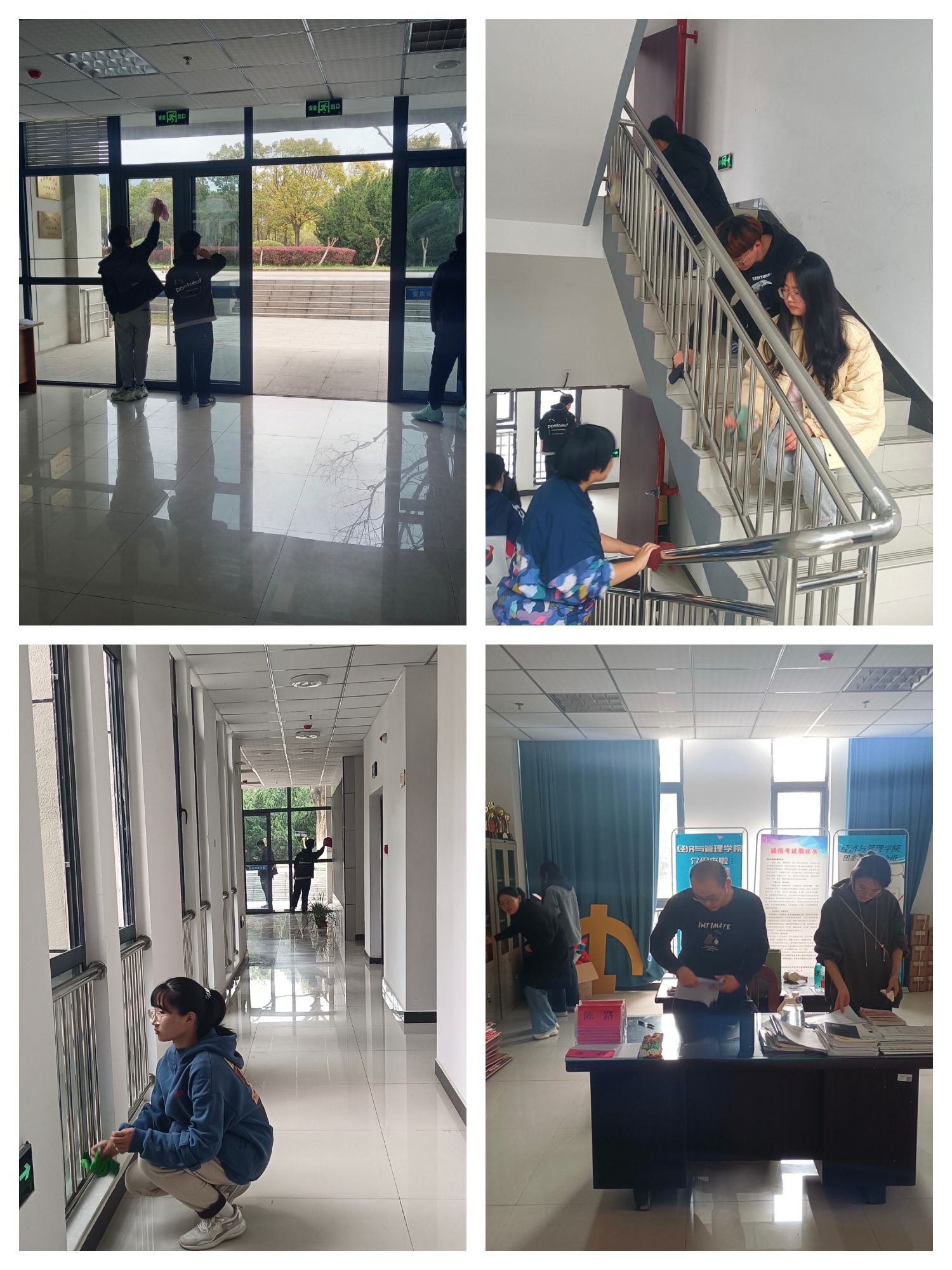 3月25日,九游体育官网团委学生会生卫维权部在M楼开展教学楼清扫志愿活动。