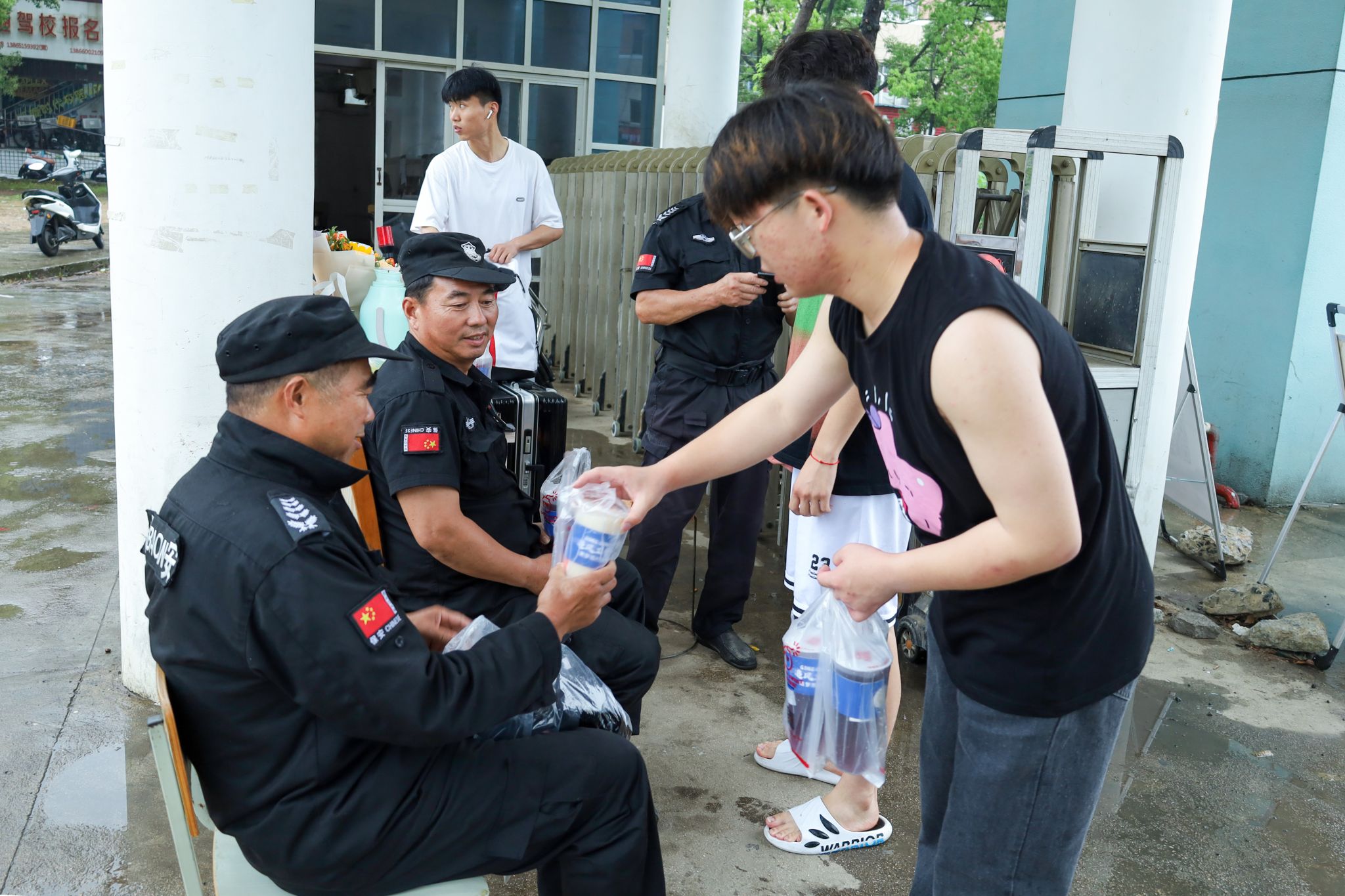 “希望奶茶能给你带来快乐。”“这是我们自己做的奶茶,请您尝尝。”同学们冒着大雨,手提饮品,从龙湖食堂出发,途经宿舍楼、校门、教学楼,为学校值班人员与身边朋友送上一份份爱心奶茶。