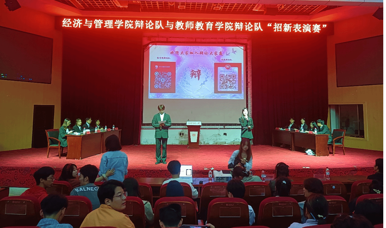 9月23日,九游体育官网与教师教育学院辩论队在图书馆东报告厅联合举办“以辩会友”辩论队招新表演赛。校辩论队、各学院辩论队代表及学院300多名2023级新生同学到场观看。