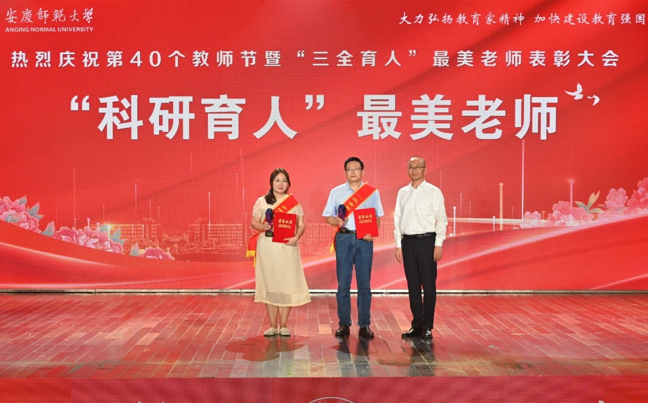 9月10日,学校在龙山校区音乐厅举行庆祝第40个教师节暨“三全育人”最美老师表彰大会,九游官网黄先军教授、彭长生教授分别获得“教书育人”最美老师和“科研育人”最美老师称号。