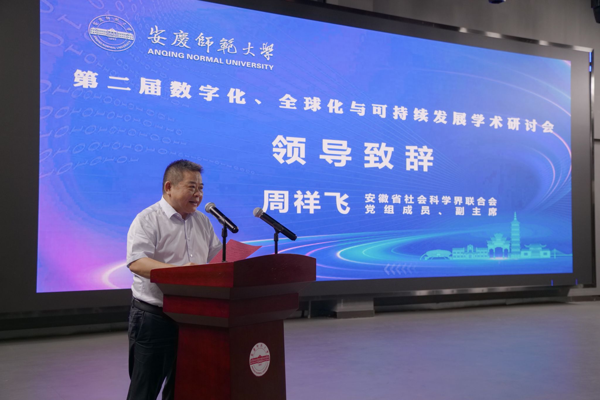 周祥飞在致辞中充分肯定了学校为会议筹备所做的精心准备,强调论坛以“数字化、全球化与可持续发展”为主题,具有十分重要的现实意义。他指出,省社科联始终秉持“围绕中心、服务大局”的宗旨,重点关注数字化、可持续发展等领域课题研究,推动系列研究成果转化为政策建议,为省委、省政府决策提供智力支撑。此次会议,不仅为学校师生提供了学习交流平台,也为全省社会科学界特别是经济学、管理学领域的创新发展注入了新的活力。