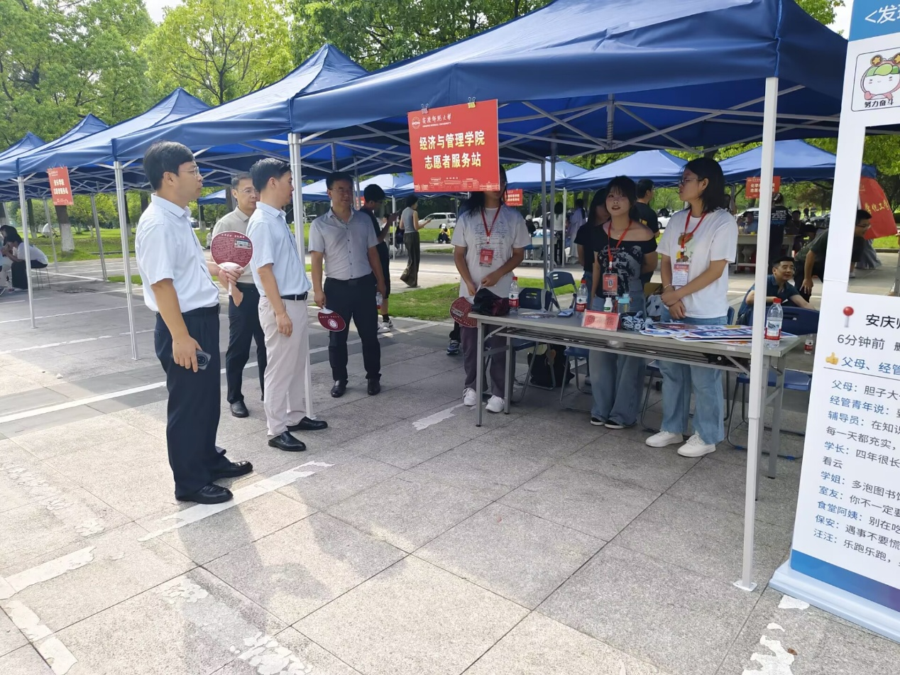 迎新现场暖意融融,学院党政班子成员深入一线,看望慰问工作人员与志愿者,询问迎新进度并指导关键环节;同时与新生及家长热情交谈、耐心答疑,勉励新生尽快转变角色、适应大学节奏,以昂扬姿态成长为德智体美劳全面发展的社会主义建设者和接班人。此举既鼓舞了迎新团队的工作热情,更让新生及家长切实感受到学院的关怀,为新学期开篇注入温情与力量。