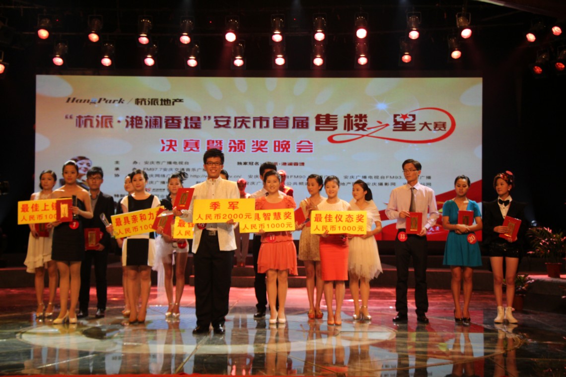 “杭派滟澜香堤”安庆市首届售楼之星大赛,由安庆市广播电台主办,杭派滟澜香堤独家冠名,安庆交通音乐广播承办,安庆网络广播电视、安庆房地产网协办。比赛中,选手通过自我风采展示、地产知识PK、个人才艺表演、楼盘描述、推介销售才华展示、评委即兴考评几个环节综合考评,由专业评委和政府领导、房产业资深代表、幸运观众代表组成,根据选手的展示情况予以评价。