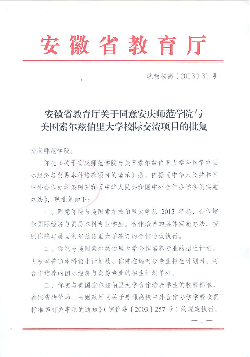 2013年5月7日,安徽省教育厅皖教秘高[2013]31号文批复,同意九游官网与美国索尔兹伯里大学进行中外合作办学,培养国际经济与贸易专业本科学生。今年九游官网将招收60名计划内本科层次的中外合作办学国际生。将按照国际先进的“2+2”教育教学模式进行培养,前两年在九游官网学习,成绩合格、符合相关条件者可以到美国索尔兹伯里大学学习后两年。学生在完成教学计划规定的课程和学分后,可以同时获得两校的学士学位。