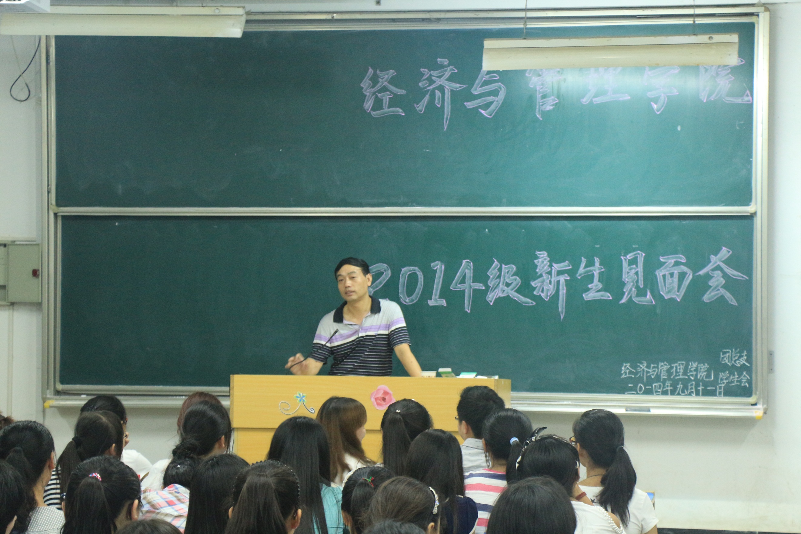 “大学是智慧的象征,是令人向往的地方。就像习近平总书记说的一句话‘有梦想,有机会,有奋斗,世界上一切美好的事物都可以创造!”杨国才院长在9月11日晚召开的新生见面会上对全体新生寄语。