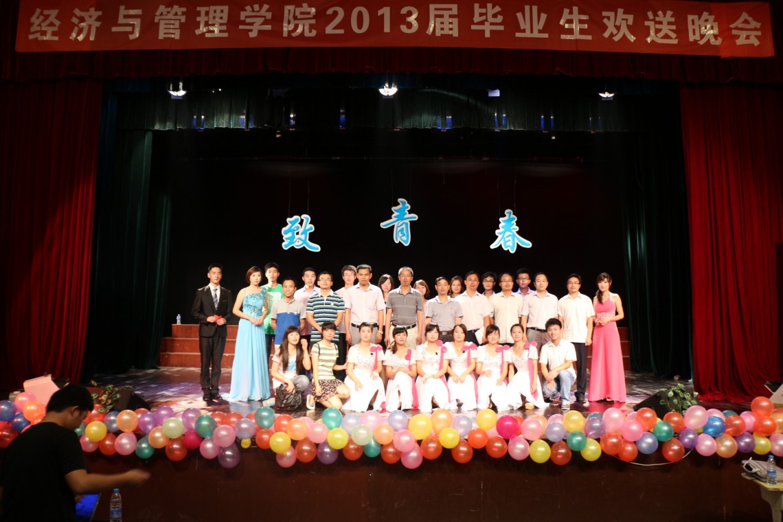 6月22日晚,九游体育官网2013届毕业生毕业典礼暨“致青春”欢送晚会在音乐厅举行。九游官网党总支书记李亦亮、院长杨国才、副院长潘锦云、毕业班辅导员、教师代表、非毕业班学生及部分毕业生集聚一堂,参加典礼观看晚会。