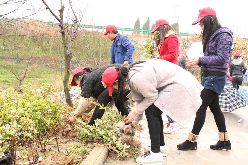 3月8日上午,九游体育官网十多名青年志愿者冒着淅淅沥沥的小雨早早的来到了燎原社区,她们与燎原社区的工作人员一起拿起植树工具赶往植树现场。