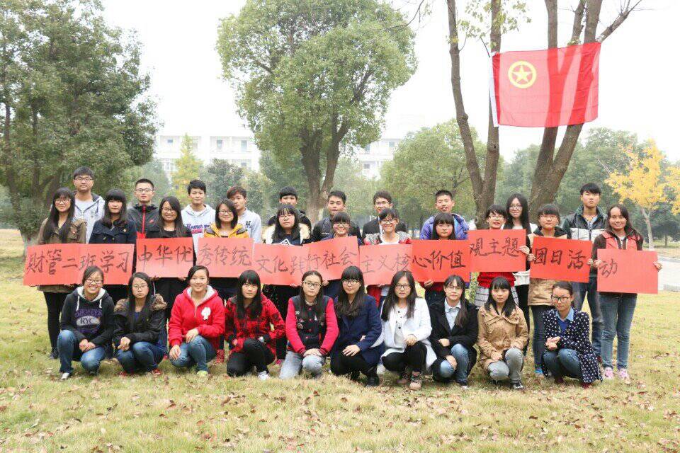 学院各团支部以学团章、唱团歌相结合开展了一系列切合主题,题材丰富多样的团日活动。其中,2013级物流管理一班开展了身边的“三修”教育活动,带领同学参观革命纪念馆和独秀园等革命圣地践行社会主义核心价值观。号召全体团员从身边做起,从自己做起,做到诚信课堂,不带手机进课堂,不带早点进课堂,认真听课,认真学习,并且倡导光盘行动,做到环保节约。活动简单易懂,又深入人心,给同学们留下深刻的印象。2013级国贸合作班从当下大学生对汉语言文字遗忘弃用非常普遍的现象里得到启发,在班级举行汉字听写大赛,让同学们充分感受汉字文化的魅力,以及中华传统文化的博大精深和与时俱进,弘扬中华优秀传统文化这一主题。2014级财务管理四班的同学开展主题文艺活动,以梦想为主题,让同学们在温馨的氛围里体会社会主义核心价值观,去坚持自己的大学梦想。2014级物流管理一班团支部在辅导员程秀芳老师的指导下,带领本班同学赴燎原社区开展主题团日活动,同学们为社区老人们亲手包饺子,帮他们整理内务、打扫卫生,陪老人们聊天,弘扬中华民族尊老美德。