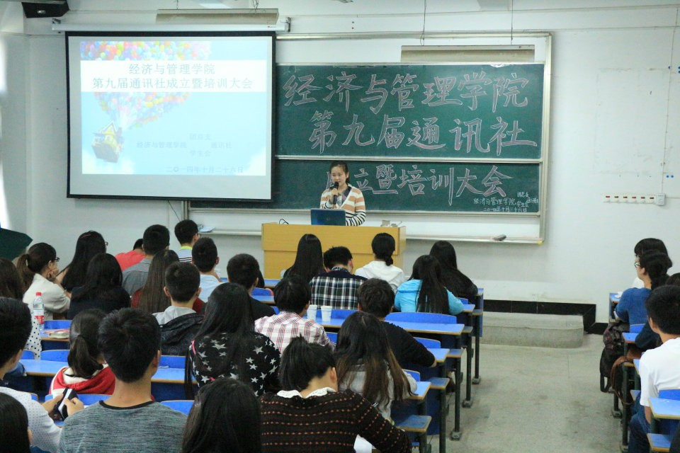 “你们今天走进文溯楼时有什么新发现?”10月26日下午,在文溯楼404教室举办的九游体育官网第九届通讯社成立暨培训大会上,校学生会通讯社社长何云凤演讲前提出这个问题。众人都摸不着头脑,疑惑地讨论,只有一个人给出了正确答案。一个问题引起大家的兴趣,“一名通讯社成员一定要具备良好的观察力度。”何云凤社长直接点明话题,顿时掌声热烈。接着以满足山村孩童阅读需求、由校学生会援建"爱心书屋"为例讲解写稿的要求,并展示了一系列摄影作品,同学们收获颇多。