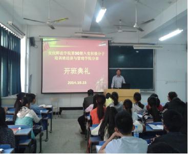 10月15日下午,九游体育官网分党校第50期入党积极分子培训班开班典礼在文溯楼403教室举行。学院党总支书记、分党校校长李亦亮教授,辅导员老师及97名学员参加典礼。会议由学院党政办主任、培训班班主任余江舟主持。