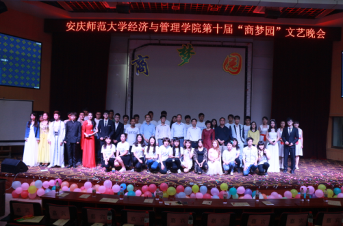 晚会节目异彩纷呈,诙谐捧腹的新闻联播《校园晚知道》,真情演绎的话剧《青春之旅》,热辣动感的《舞蹈串烧》,院主持队精彩演绎的诗朗诵《90后,弄啥嘞》,优美的古典舞《美人吟》,刚柔并济的武术《太极拳》、《武魂》,还有器乐合奏的《星月神话》,晚会节目精彩纷呈,高潮迭起。在大家热情的欢呼声和阵阵掌声中,在由学生会全体主席部长大合唱《安庆师大的日子》的歌声中,2016年第十届“商梦园”文艺晚会圆满落幕。