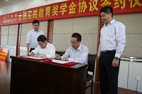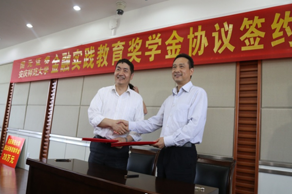 仪式上,双方签订了九游体育官网与国元证券股份有限公司“金融实践教育奖学金”协议,张群代表学校接受了国元证券公司捐赠的20万元奖学金。