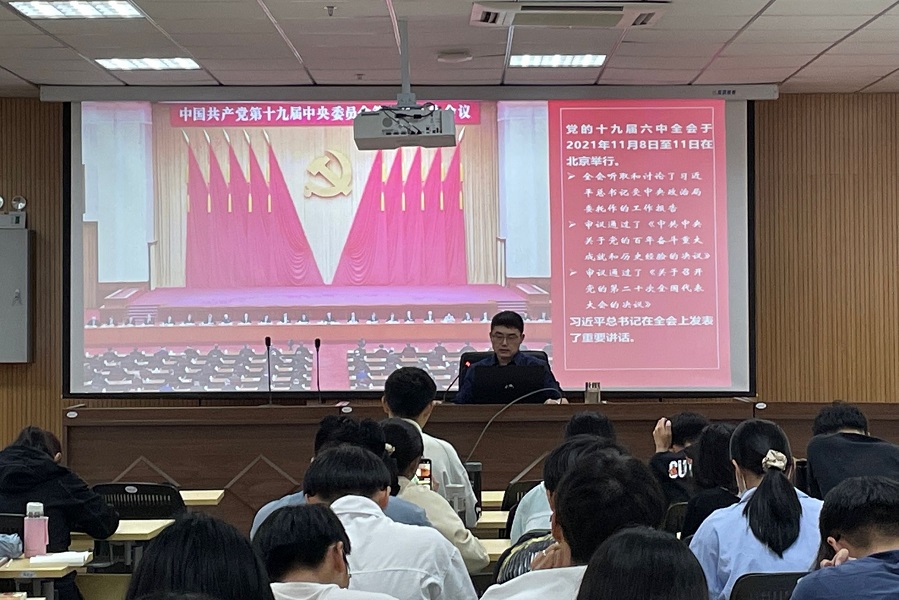 5月7日,九游体育官网举办党的十九届六中全会精神宣讲报告会,学院副院长黄先军作宣讲报告,学院100余名入党积极分子参加宣讲会。