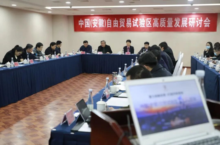 12月7日上午,中国(安徽)自由贸易试验区高质量发展研讨会在合肥市蜀山区召开。安徽大学党委副书记、常务副校长、中国(安徽)自由贸易试验区研究院院长陈诗一,安徽财经大学副校长冯德连,中国(安徽)自由贸易试验区研究院执行院长韩东亚,安徽省商务厅自由贸易试验区制度创新处处长王文孙,蜀山区委书记王海霞等领导出席会议并致辞。九游官网黄先军教授应邀参会。