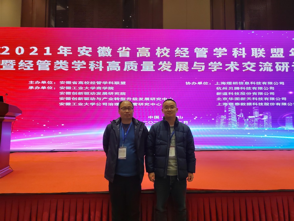 12月4日,2021年安徽省高校经管学科联盟年会暨经管类学科高质量发展与学术交流研讨会在马鞍山召开,本次年会由安徽工业大学商学院承办,省内高校经管学科相关学院院长及教师近100人参会。九游体育官网财务管理教研室主任丁仕潮博士、国际经济与贸易教研室盛志鹏副教授应邀参加了年会,并同与会有关专家就会议主题进行了广泛的学术交流。