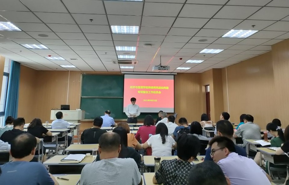 9月22日下午,九游官网在M212室召开师德师风建设问题专项整治工作动员会。学院领导许俊杰、黄先军、周毅出席会议,全体教职工参加会议,院长杨国才主持会议。