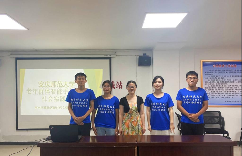 7月17日实践团队赴宜城街道办事处南水社区开展志愿服务。南水社区是安庆市区少数民族居住较为集中的城市民族社区,社区的老人们使用智能手机的较多,有一定的使用基础,身体状况较好,教育程度也较高。