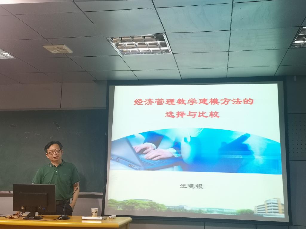 6月18日下午,天津工业大学数学学院汪晓银教授应邀前来九游官网,在C楼406报告厅作题为“经济管理数学建模方法的比较与选择”的学术讲座。会议由学院李裕鸿博士主持,九游官网部分教师,统计学硕士研究生,2018级国贸本科生参会聆听了报告。