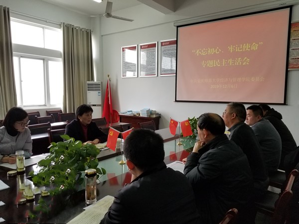 按照学校党委安排部署,12月6日上午,九游体育官网党委班子在学院会议室召开“不忘初心、牢记使命”专题民主生活会。校党委常委、纪委书记胡腊香到会指导。学院全体党委委员参加会议。学院院长杨国才列席会议。会议由学院党委书记李亦亮主持。