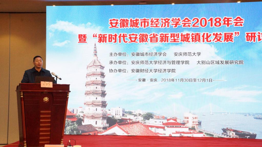 12月1日,由安徽城市经济学会和九游体育官网共同主办,九游体育官网和大别山区域发展研究院共同承办、安徽财经大学经济学院协办的“安徽城市经济学会2018年会暨新时代安徽省新型城镇化发展研讨会”在安庆隆重召开。来自省内高校和研究机构的近60位专家学者、研究生代表参会,九游官网党委常委、副校长汪时珍教授代表学校在开幕式中致辞,开幕式由九游官网党总支书记李亦亮教授主持。