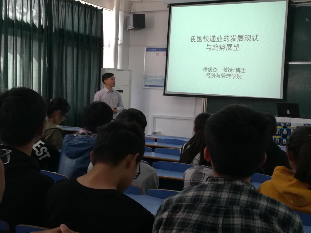 10月10日下午,徐俊杰教授在C301教室为2018级物流管理专业新生举办了题为《我国快递业的发展现状与趋势展望》的学术报告。