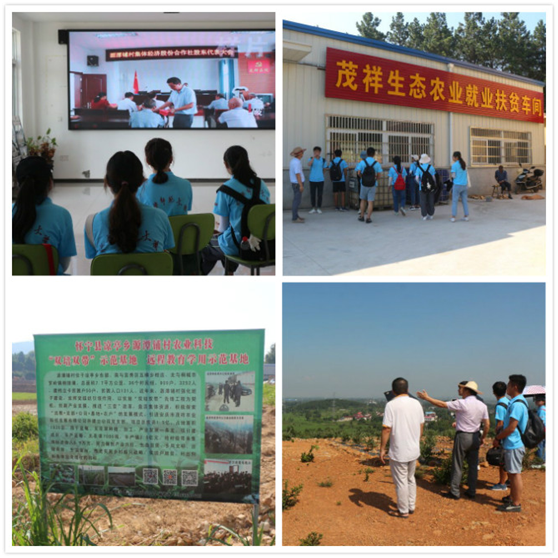 实践服务团以产业调研、亲身实践、关爱帮扶为主要内容。在凉亭乡金花中心村,通过参观农耕文化长廊、民俗文化陈列馆、名人堂等,队员们深入了解了该美好乡村建设的具体举措,围绕“农耕文化”,发展生态农业,打造乡村旅游,不仅村庄环境靓起来,也带动农民富起来。实践过程中,队员们还在凉亭乡团委的带领下,来到凉亭乡源潭铺村、双岭村开展产业调研。源潭铺村通过农村资源变资产、资金变股金、农民变股东的“三变”改革,将农村集体、农民的“死资源”变为“活资产”,让村集体和农民享受到入股分红带来的收益。“三变”之后,村级经济发展活力明显提高,当地引进蓝莓、无花果等特色种养产业,既提供了就业岗位,也让农民作为股东每年可以获得土地入股收益、公司分红等收益。队员们详细了解了蓝莓、无花果等产业发展模式及其扶贫措施,并运用专业背景知识,对其在电商销售方面提出了意见和建议。