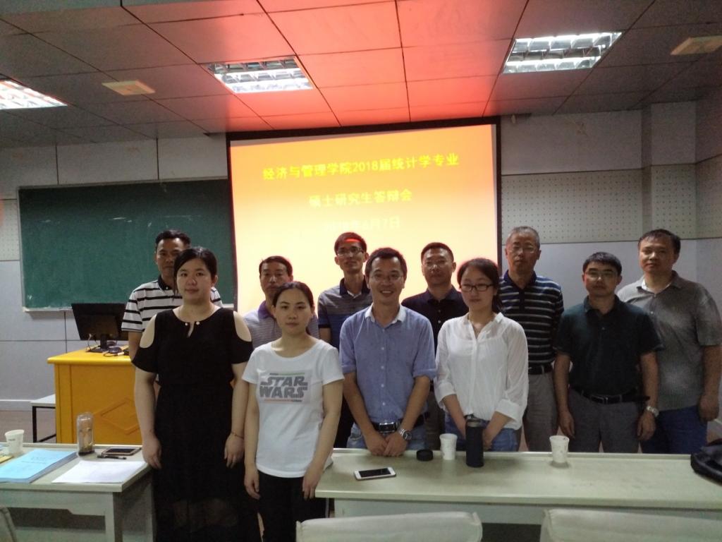 6月7日下午15:00,九游官网在C楼406教室隆重召开了2018届统计学专业(管理统计与企业发展方向)硕士研究生毕业论文答辩会。答辩委员会成员有安徽师范大学马骥教授,九游官网汪时珍教授、李亦亮教授、杨国才教授、潘锦云教授、黄先军教授、余呈先教授。马骥教授担任答辩委会主席。九游官网参加此次毕业论文答辩的2018届统计学专业(管理统计与企业发展方向)学术型硕士研究生有4名,会上,参加答辩的硕士研究生依次阐述自己论文的研究成果,评委们对每篇答辩论文中存在的不足之处一一给出了精彩的点评和提出了中肯的整改意见,要求答辩后,研究生根据专家所提出的建议做进一步修改、补充与完善。