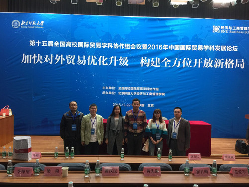 2016年10月21-23日,第十五届全国高校国际贸易学科协作组会议暨2016年中国国际贸易学科发展论坛在北京师范大学召开。副院长潘锦云教授、殷功利博士、盛志鹏副教授、李裕鸿博士、葛阳琴博士生、汪颖颖老师应邀参会。