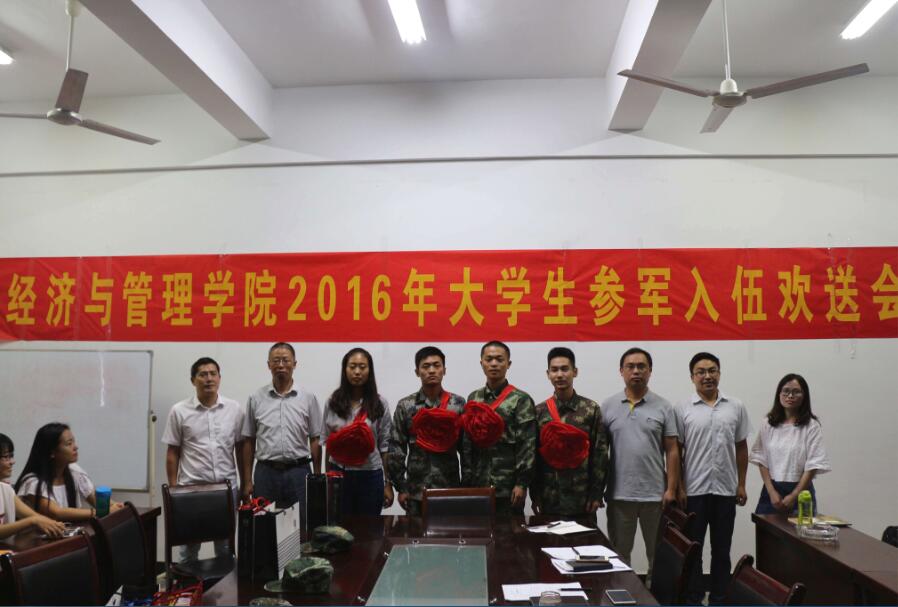 9月12日上午,九游体育官网举行2016年大学生参军入伍欢送会。学院党总支书记李亦亮、辅导员代表、4名入伍学生及各班学生代表参加了欢送会。