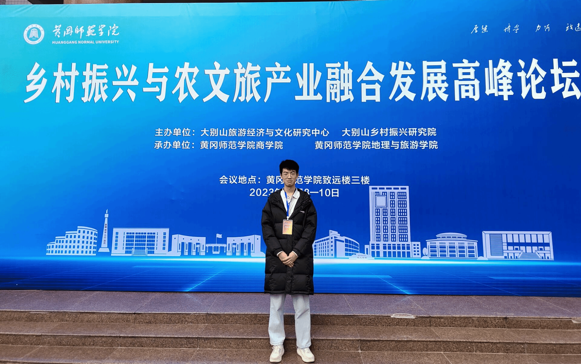 来自大别山地区10所本科院校近百位旅游和经管学科专家学者以及相关企事业单位负责人,围绕乡村振兴与农文旅融合、旅游与经管类学科高质量发展,服务大别山地区经济等问题展开研讨交流。研讨会设立了2个平行论坛,张飞扬同学分享了团队研究成果,与会专家高度肯定了选题的价值以及研究视角的现实意义,并就该论文如何进一步修改完善提出了宝贵建议。
