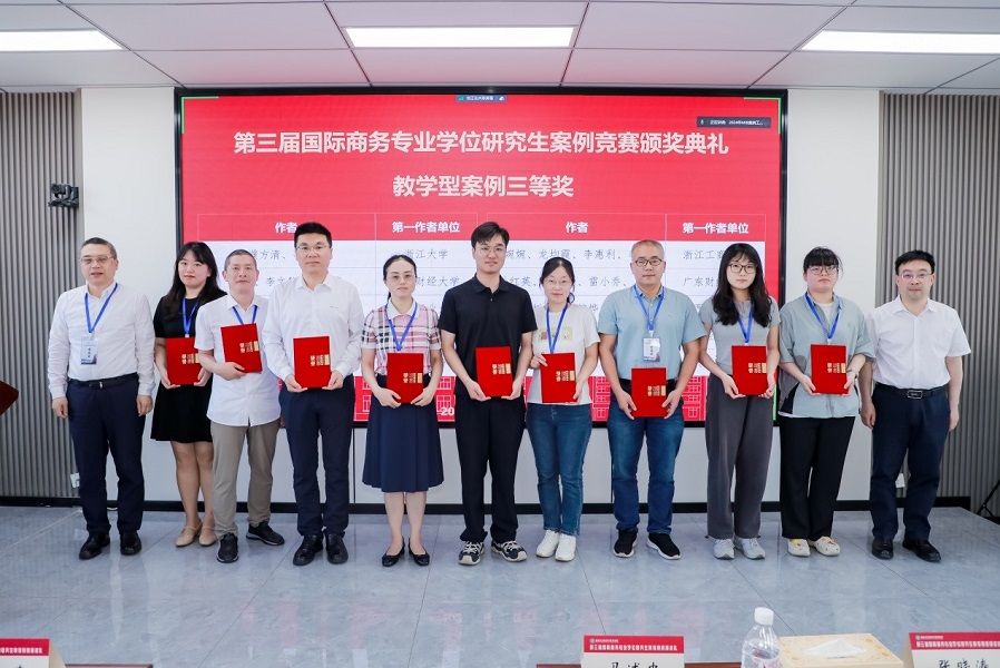 2024年6月15日,由全国国际商务专业学位研究生教育指导委员会指导、 浙江大学中国数字贸易研究院主办的第三届国际商务专业学位研究生案例竞赛在湖南大学举行了颁奖礼,九游官网殷功利副教授带领部分研究生参加了颁奖活动。