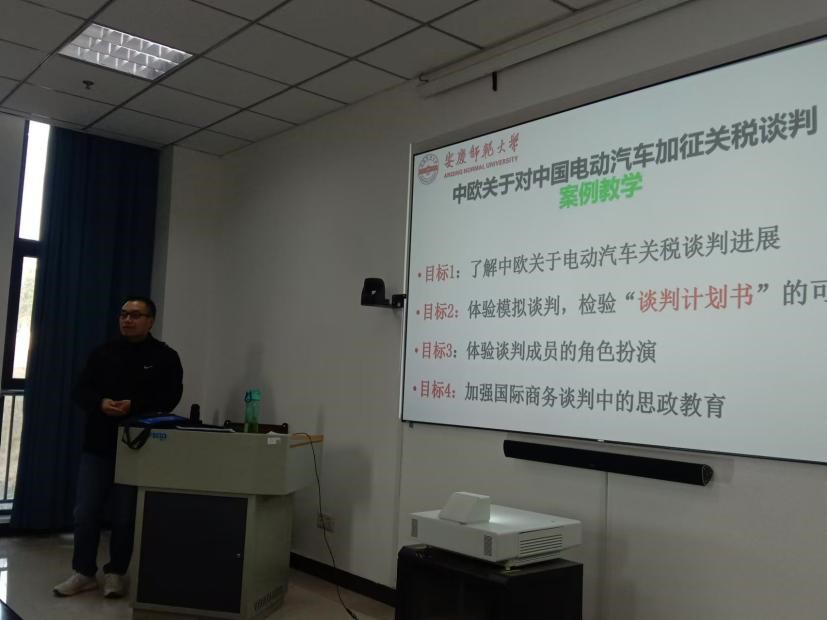 12月24日,李裕鸿老师在M负103教室开展了一堂以“中欧电动汽车市场准入技术标准谈判”为主题的研究生课程思政示范课,副院长梁培培、国贸教研室全体教师及部分国际商务硕导参加了此次活动。