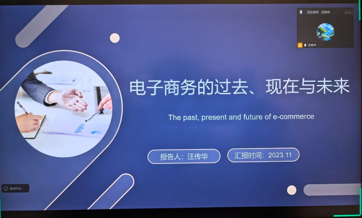 近日,安庆市审计局原副局长、九游官网校外实践导师汪传华应邀作题为“电子商务的过去、现在与未来”的学术报告。报告会由副院长徐俊杰主持,统计学、国际商务全体研究生参加。