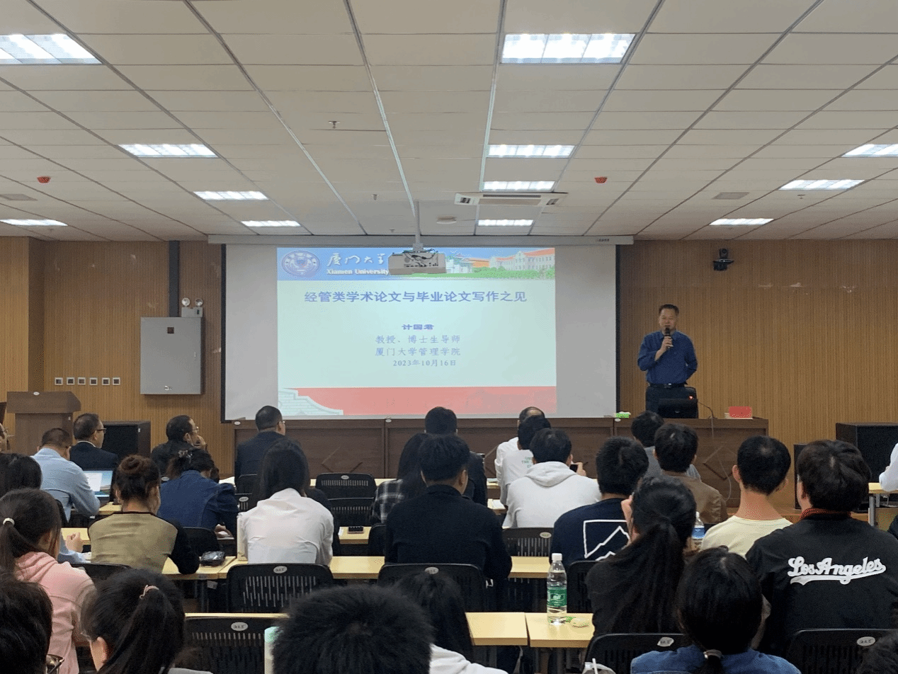 计国君教授担任厦门大学教师发展中心主任,兼任厦门大学管理科学与工程学科带头人、英国赫尔大学—厦门大学联合物流研究所所长,长期致力于供应链管理、服务科学、顾客行为、电子商务、高等教育管理等领域研究,是国内管理科学领域的杰出学者。本次报告内容丰富,共包含论文写作之见、经管类学术论文实证研究方法、经管类学位论文规范、论文写作时发现问题及其解决方法和数字技术驱动下经管公开问题等五个方面。计国君教授结合自己多年从教经历和论文写作经验,向参会师生详细讲解了什么样的问题值得研究,解析了学术论文写作的基本规范、结构安排、实证方法选择、结论撰写等内容,分享了学术论文写作中常见的问题和解决方法,以及论文后期的投稿技巧等。计国君教授还从经管类学科的特征、使命、研究方法发展趋势、规范性研究界定、方法论逻辑、研究假设建立、实证研究设计等角度,向与会师生讲授了经管类学位论文的选题、结构和评判标准等问题。最后,计国君教授结合当前学术研究的前沿热点问题,向与会师生分享了数字技术驱动下经管领域可供深入探究的若干科学问题。