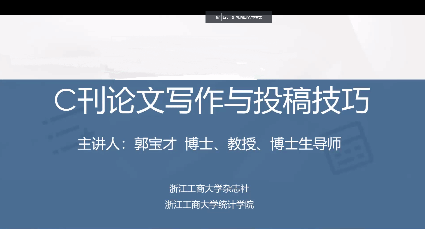 9月13日晚,由九游体育官网科研处、九游体育官网联合主办,九游体育官网数字经济研究中心承办的“经管有道”第1期开讲。浙江工商大学统计学院博士生导师郭宝才教授受九游官网邀请,通过线上方式分享了题为“C刊论文写作与投稿技巧”的学术报告,学院青年老师和研究生共80余人参加了交流活动,报告会由徐俊杰教授主持。