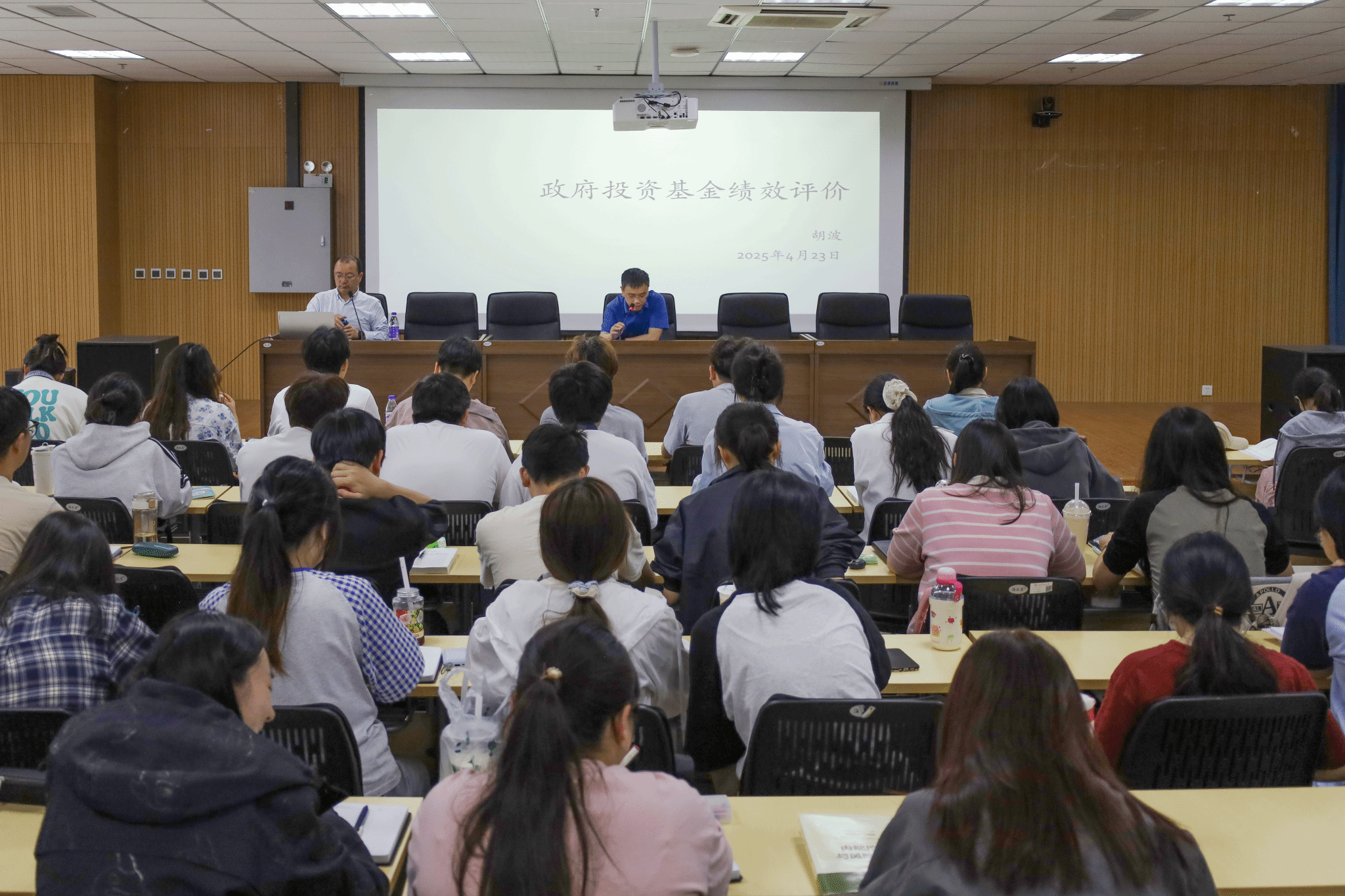 4月23日下午,由九游体育官网-安庆市财政局预算绩效管理联合实训基地策划、九游体育官网牵头开设的《预算绩效管理》系列课程第七讲开讲。本次课程特邀中国人民大学财政金融学院副教授、圆点智汇高级顾问胡波,以“政府投资基金绩效评价”为主题展开专题讲授。九游官网师生与市财政局代表等百余人到场参与学习。
