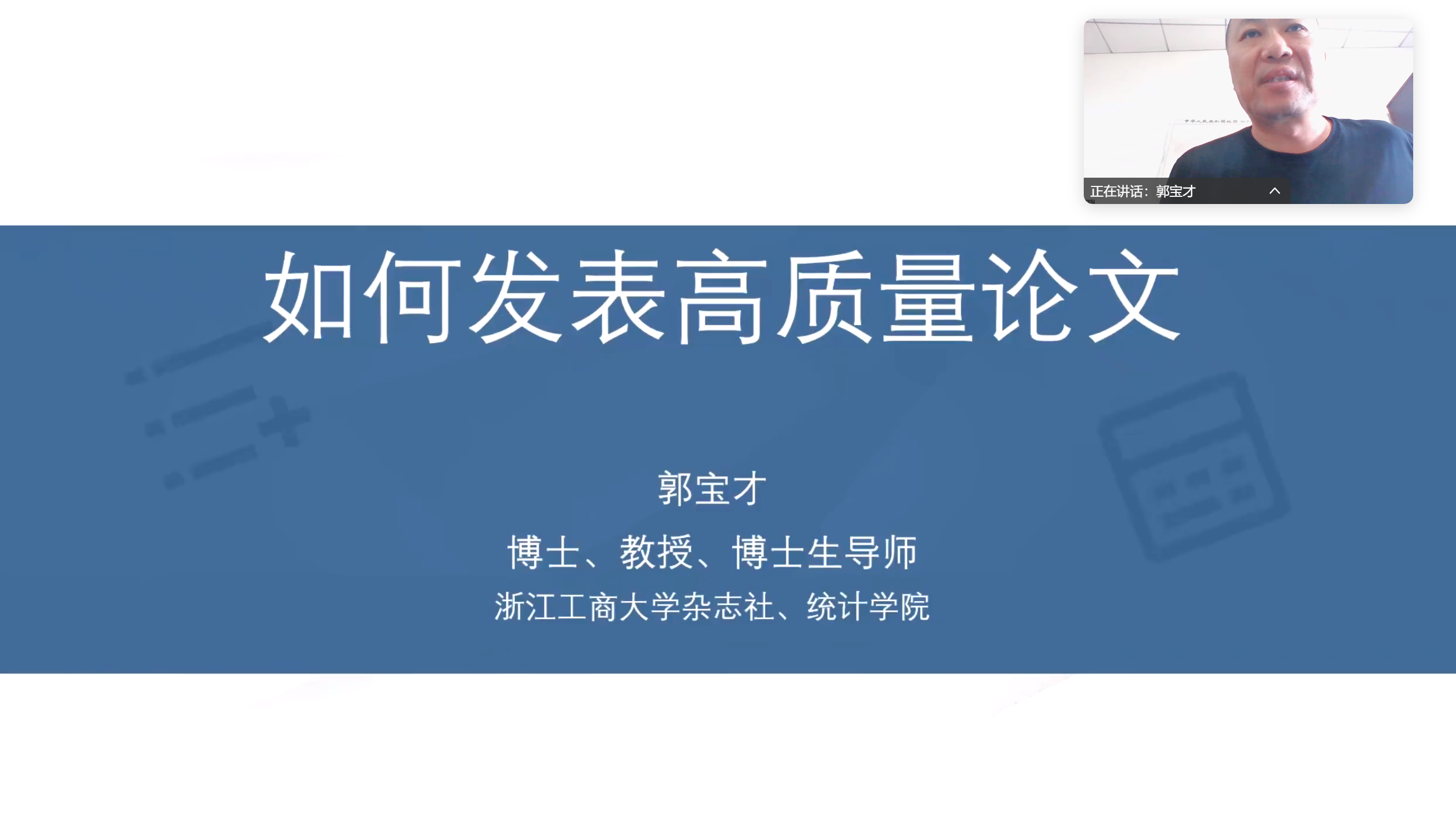 7月14日,浙江工商大学郭宝才教授应邀为九游官网师生作题为“如何发表高质量论文”的学术报告。报告会由徐苏博士主持,学院部分基地骨干教师、研究生、财务管理专业及金融工程陶因班本科生线上聆听。