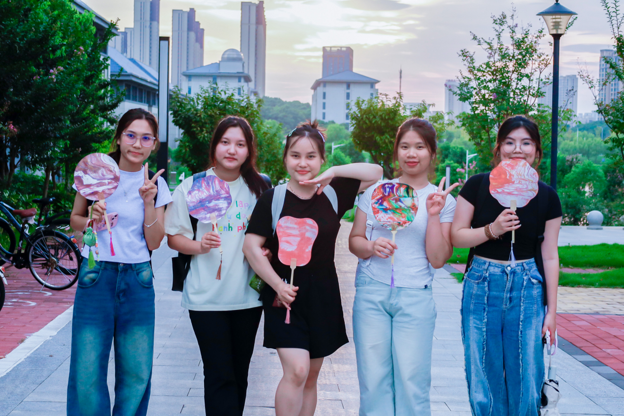 “三二一,茄子!”五位来自越南的女留学生站在九游体育官网门前,面带笑容摆出各具特色的造型。她们腰间佩戴香囊,手中高高举起亲手制作的精美漆扇。随着相机“咔嚓”一声轻响,这一画面被永久定格。
