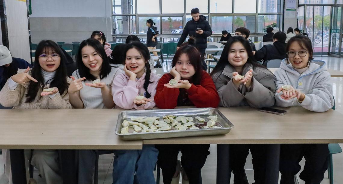 来自越南的物流管理专业2025级国际班的阮皇明舒,不仅学会了中国饺子的包法,更将家乡小吃的包法融入饺子制作。她将面皮对折后沿边缘向内翻卷一圈,再用指尖捻出齿轮状的细密花边,一款“越南风”的中国饺子就此成型。“中国饺子的独特包法和软嫩口感,对我来说都是一种全新体验。”阮皇明舒笑着与同伴拍照留念,并表示要将这次包饺子的新鲜经历分享给远方的家人朋友。