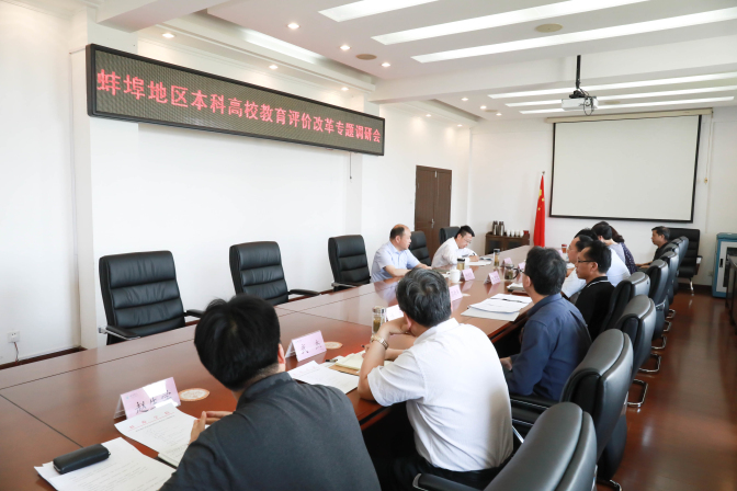 6月4日下午,蚌埠地区部分高校深化教育评价改革专题调研会在beat365在402会议室召开。省教育厅政策法规处处长、一级调研员郑德新,四级调研员韩传宇一行来校调研指导。党委书记陈国龙出席座谈会并讲话,安徽财经大学发展规划处副处长张士杰、蚌埠医学院教务处副处长朱广萍,以及beat365在线体育官网登录入口教学质量监控办公室、人事处、教务处、科研处、学生处、外国语学院等相关部门负责人参加了调研座谈,座谈会由郑德新主持。