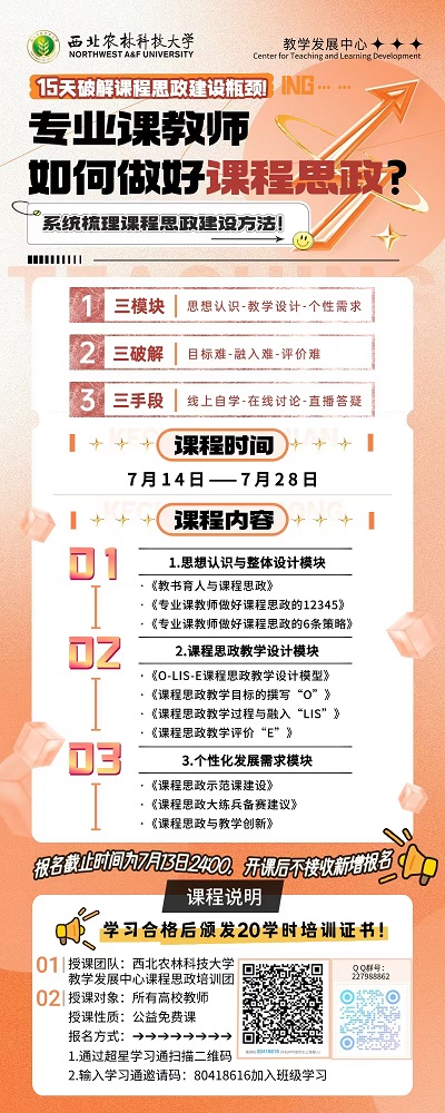 为进一步提升beat365教师队伍的教学水平与育人能力,促进教师专业发展,加强校际间的交流与合作,学校决定依托西北农林科技大学教师发展中心的优秀教发团队与丰富的课程资源,开展暑期教师培训活动。现将有关事项通知如下: