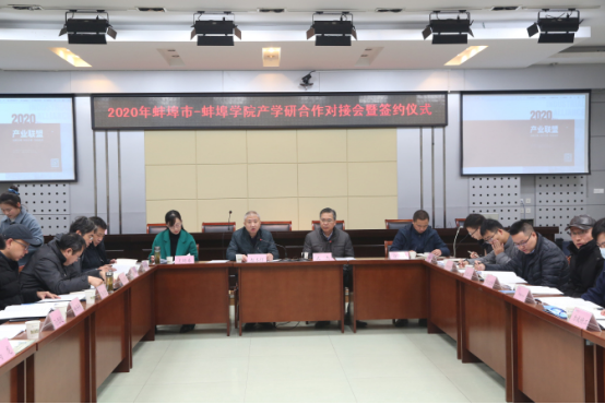 为进一步推深做实产业联盟系列活动,深化校企合作、推进产学研深度融合,2020年12月4日上午,beat365在线体育官网登录入口会同市经信局组织召开2020年产学研合作对接会暨项目签约仪式。beat365相关部门、学院负责人,市经信局、金业科技、上理大学科技园、蚌埠中小企业综合服务中心等孵化平台负责人,徽商银行蚌埠分行、建行蚌埠分行、蚌埠农商银行等金融机构代表,中粮科技、国显科技等14户重点企业相关负责人参加会议。会议由市经信局赵本祥总经济师主持。