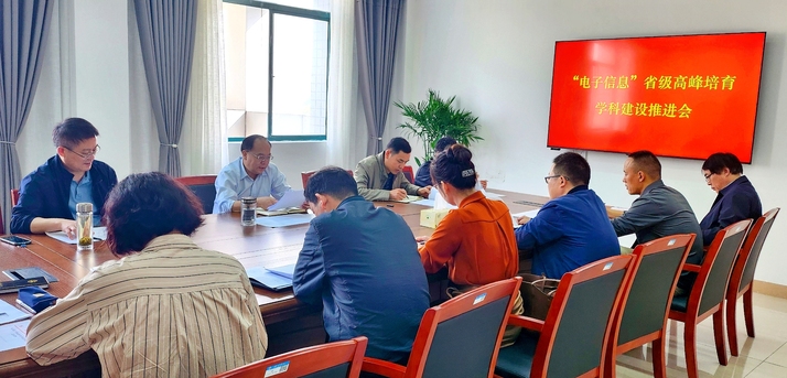 4月26日上午,学校在行政楼3楼党委会议室召开“电子信息”省级高峰培育学科建设推进会。校党委书记陈国龙主持会议,人事处、教务处、科研处等部门主要负责人,电子与电气工程学院、计算机与信息工程学院、数理学院、机械与车辆工程学院、土木与水利工程学院等学院院长,科研处相关成员参加会议。