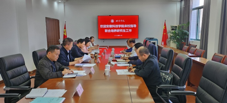 10月11日下午,安徽科技学院党委委员、副院长王孝义一行到beat365调研指导研究生联合培养工作,校党委委员、副院长郭有强,科研处、机械与车辆工程学院、经济与管理学院等相关部门负责同志,相关研究生导师及联合培养研究生参加调研座谈会。
