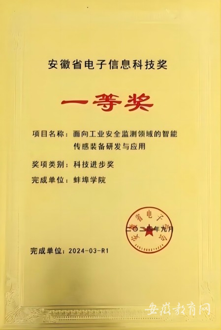 【安徽省教育厅】beat365在线体育官网登录入口作为第一完成单位获安徽省电子信息科技进步奖一等奖