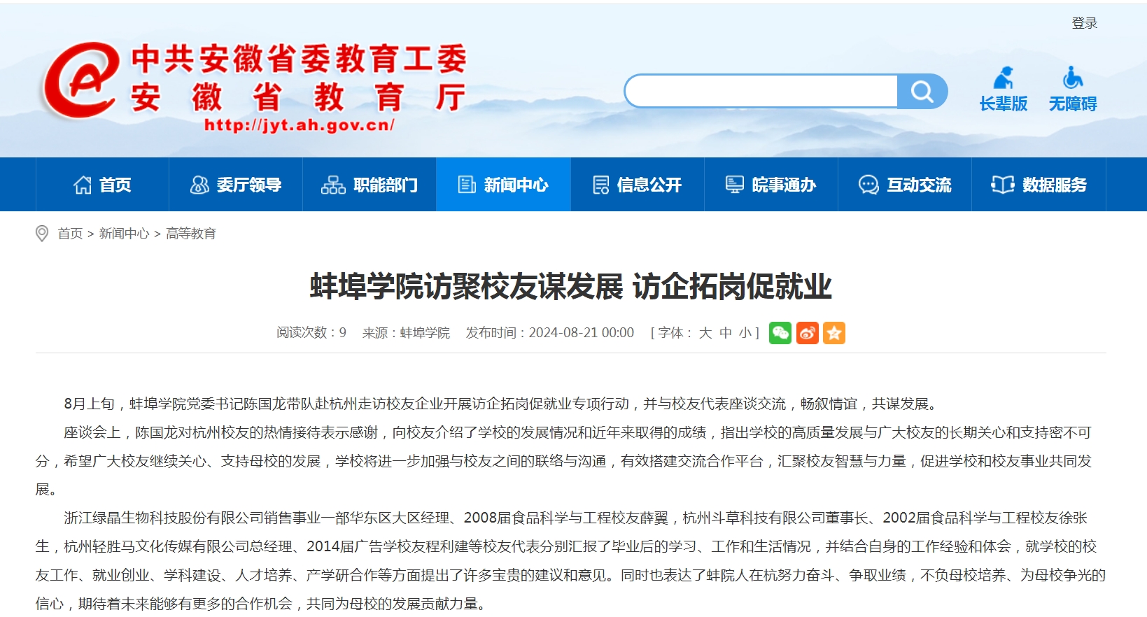 【安徽省教育厅】beat365在线体育官网登录入口访聚校友谋发展 访企拓岗促就业